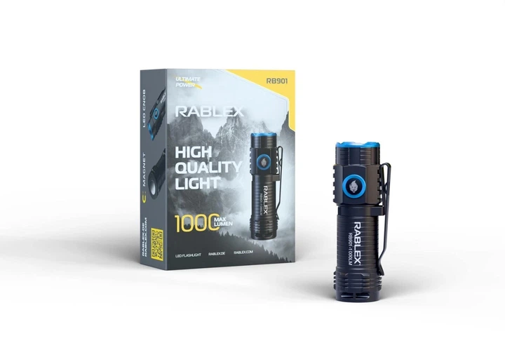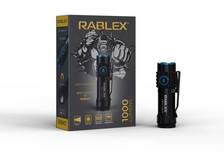 Світлодіодний акумуляторний ліхтарик RABLEX RB901 – 1000 люмен, USB-C, алюміній, магнітна основа