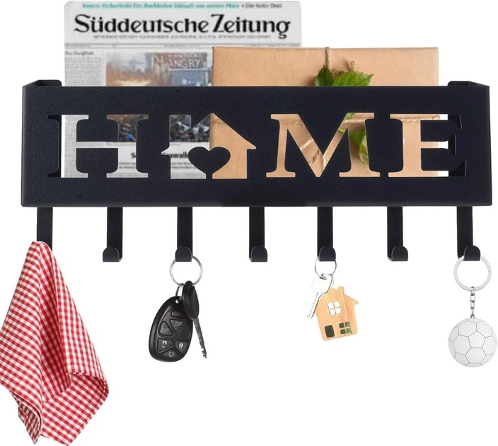 Настінна декоративна ключниця з гачками VOIMO «Home» чорна