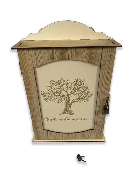 Навісний органайзер-ящик для ключів з натурального дерева з різьбленням на 9 гачків 22x31,5x9 см, ключниця настінна