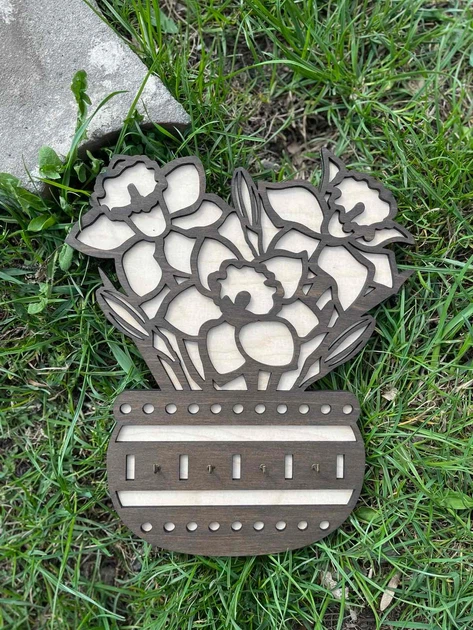 Настінна ключниця з дерева Букет Нарцис Дерев’яний органайзер для ключів Тримач для зберігання Персоналізація