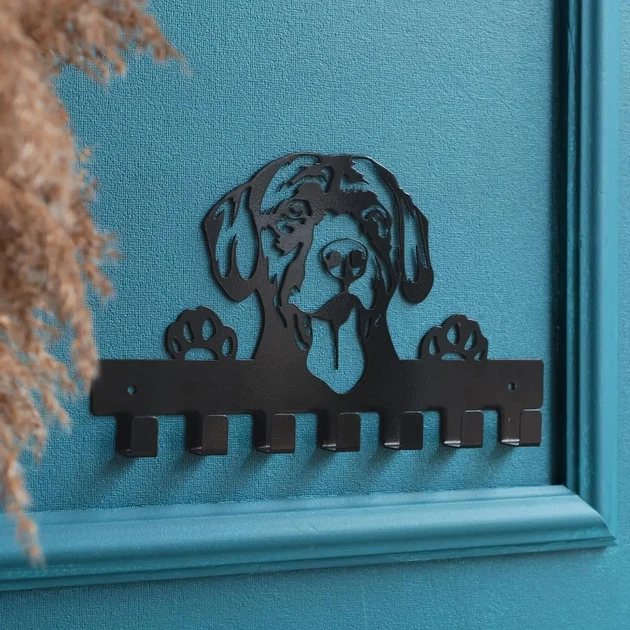 Ключниця настінна Собака металева на 7 гачків 28 х 16.5 см Чорний (KZ-46)