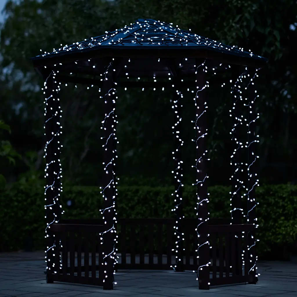 Новорічна гірлянда вулична GarlandoPro 30 м 300 LED із сонячною батареєю 8 режимів роботи чорний провід Білий SB300L30MBW