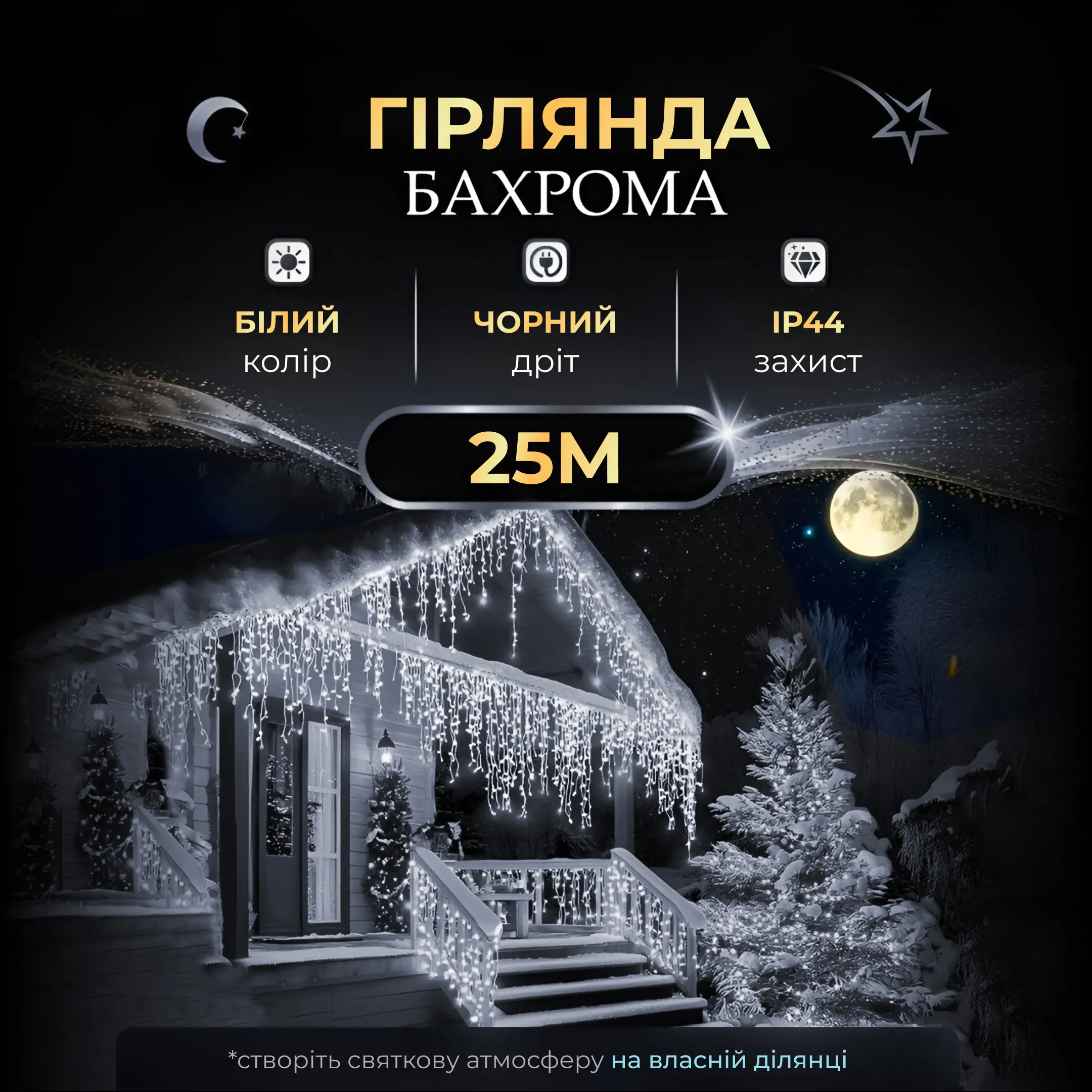 Гірлянда GarlandoPro Бахрома вулична 405 LED 25 м від мережі чорна, білий (25MBW)