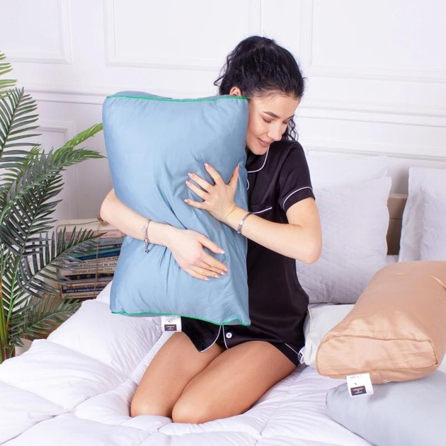 Подушка ортопедична MirSon Стружка Memory №4155 Delicate satin 0843 Grey Blue 49х32х10.5 см (2200006423690)
