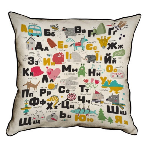 Подушка з мішковини Абетка 45x45 см
