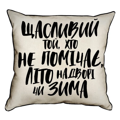 Подушка з мішковини Щасливий той... 45x45 см