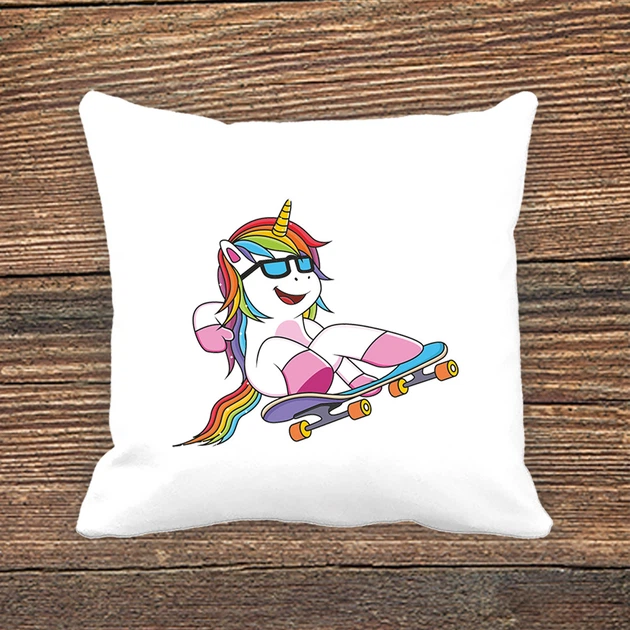Подушка з новорічним принтом Дід Мороз на скейті "Merry Christmas"