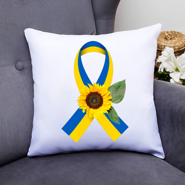 Подушка декоративна з принтом "Українська стрічка з соняшником"