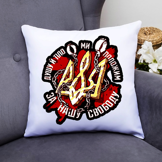 Подушка декоративна з принтом "Душу і тіло ми покладемо за нашу свободу"