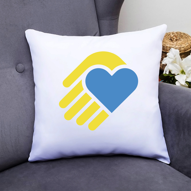 Подушка декоративна з принтом "Синє серце на жовтій долоні"
