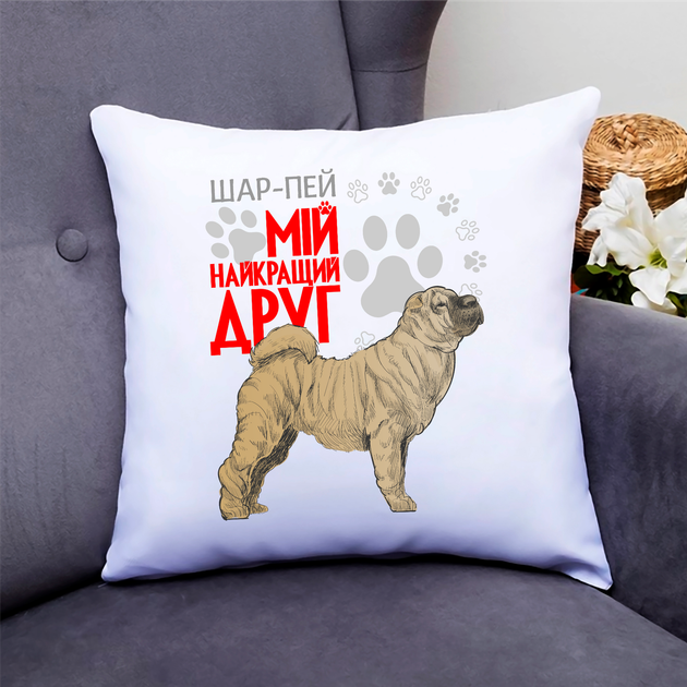 Подушка декоративна з оригінальним принтом для собачника "Шар-пей Мій найкращий друг" Push IT П000787