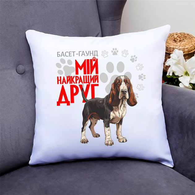 Подушка декоративна з оригінальним принтом для собачника "Басет-Гаунд Мій найкращий друг" Push IT П000763
