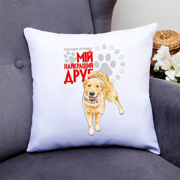 Подушка декоративна з оригінальним принтом для собачника "Лабрадор-ретривер Мій найкращий друг" Push IT П000780