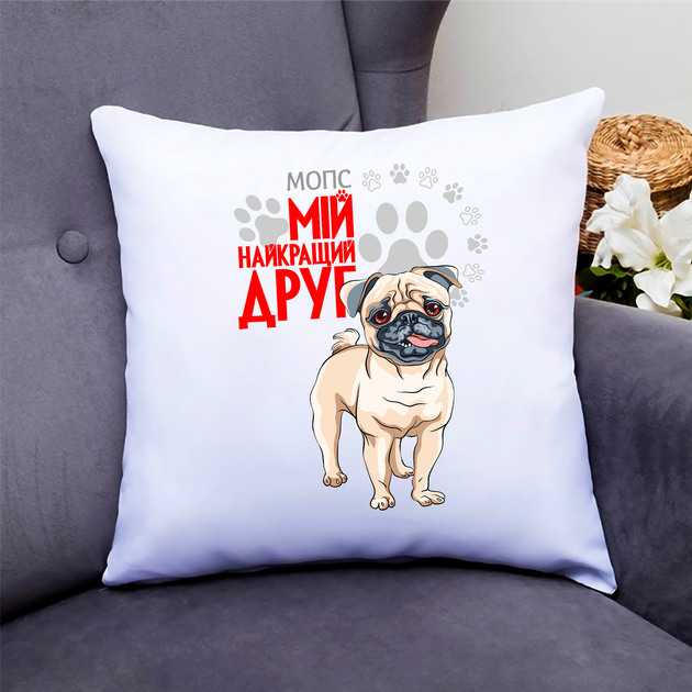 Подушка декоративна з оригінальним принтом для собачника "Мопс Мій найкращий друг" Push IT П000768