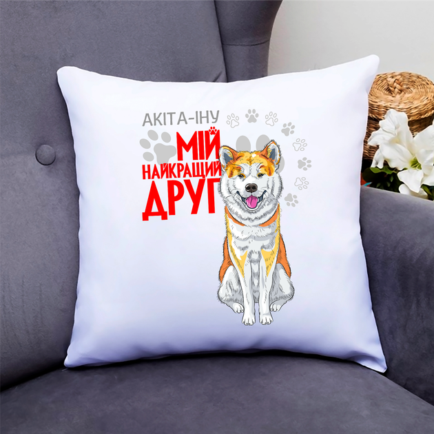 Подушка декоративна з оригінальним принтом для собачника "Акіта-іну Мій найкращий друг" Push IT П000782
