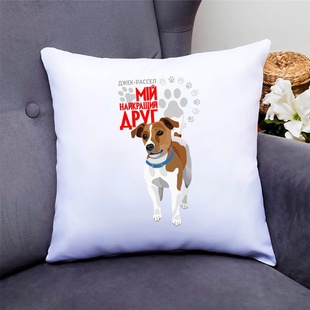 Подушка декоративна з оригінальним принтом для собачника "Джек-рассел Мій найкращий друг" Push IT П000788
