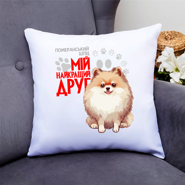 Подушка декоративна з оригінальним принтом для собачника "Померанський шпіц Мій найкращий друг" Push IT П000789
