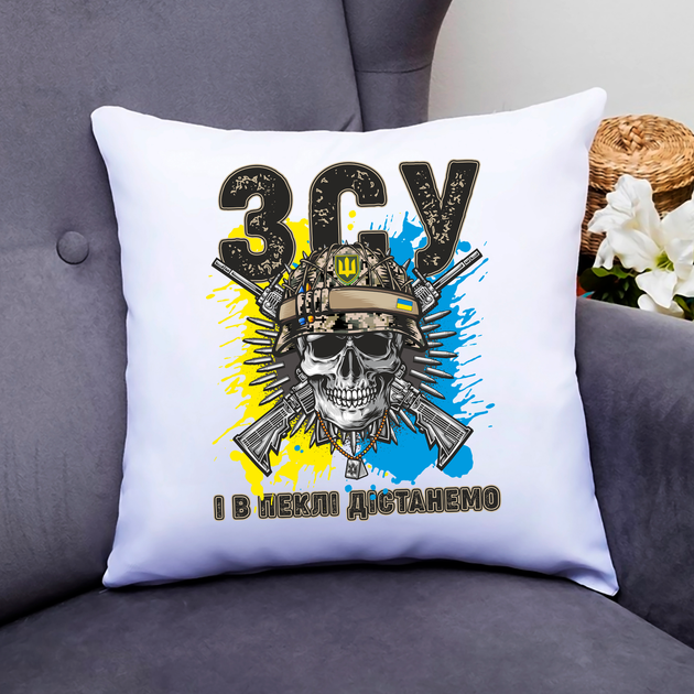 Подушка декоративна з оригінальним патріотичним принтом «ЗСУ і в пеклі дістанемо». П000809