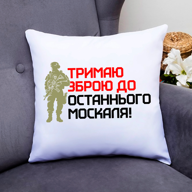 Подушка декоративна з оригінальним патріотичним принтом «Тримаю зброю до останнього москаля». П000812