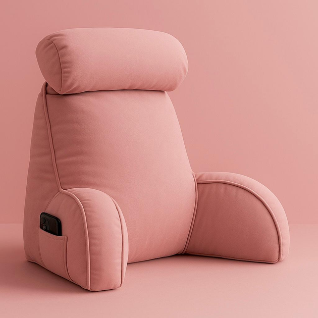 Подушка-крісло для спини з підлокітниками та кишенею 7555 см, для читання й відпочинку со съемной подушкой, рожевий