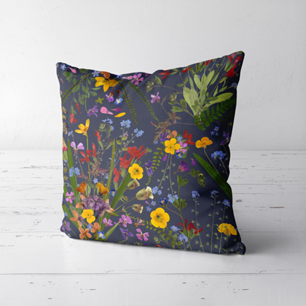 Подушка декоративна Soft Яскраві польові квіти на чорному фоні 45x45 см