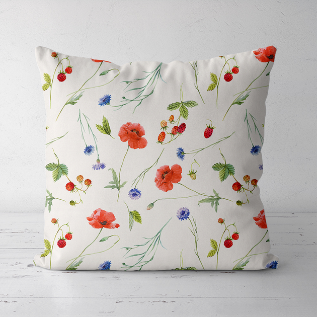 Подушка декоративна Soft Маки, волошки, суниця 45x45 см