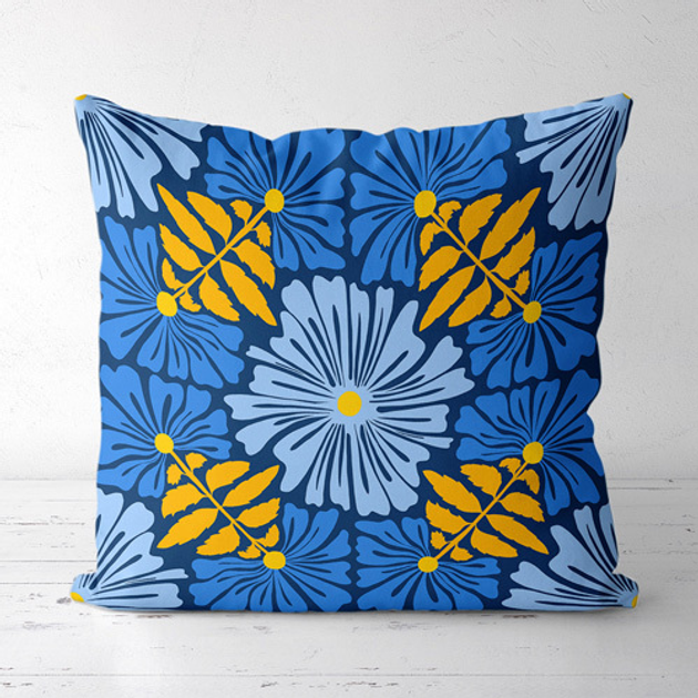 Подушка декоративна Soft Жовті та сині квіти 45x45 см