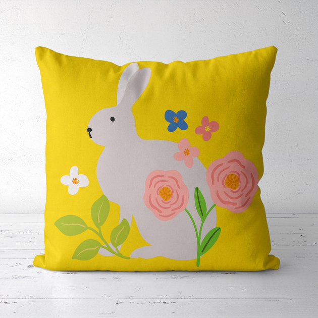 Подушка декоративна Soft Кролик та квіти на жовтому фоні 45x45 см