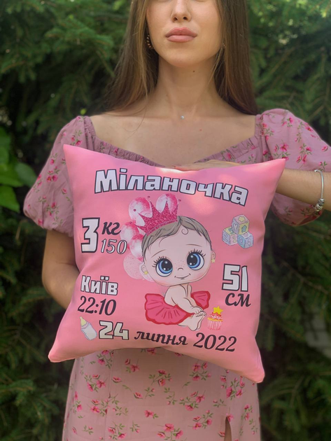 Подушка з принтом габардинова Метрика, рожева 35х35 (303)