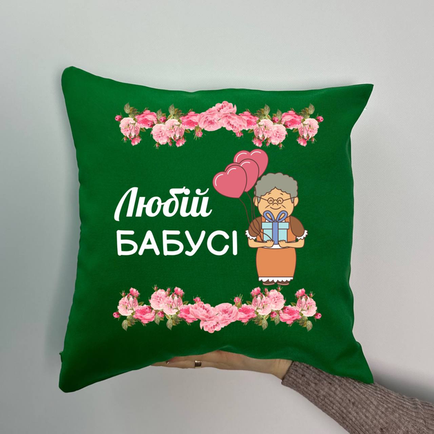 Подушка з принтом габардинова Любій бабусі, зелена 35х35 (885)