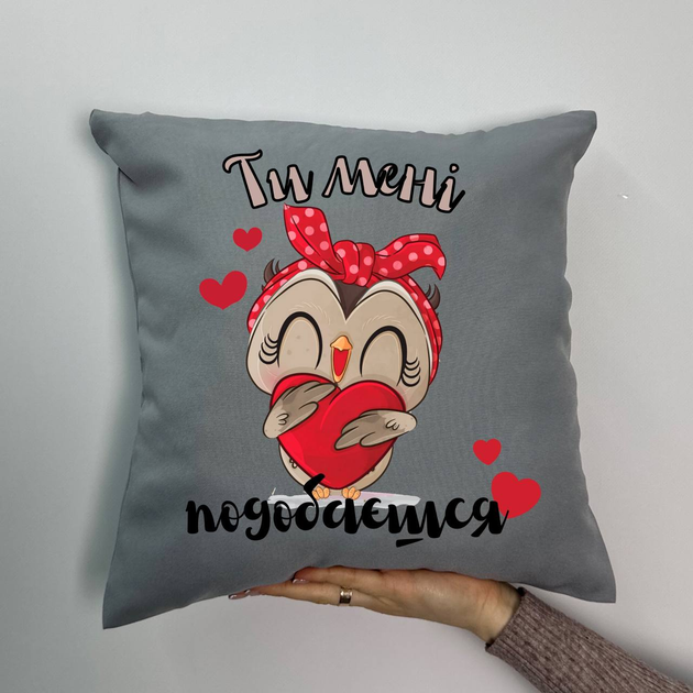 Подушка з принтом габардинова Ти мені подобаєшся, сіра 35х35 (1730)