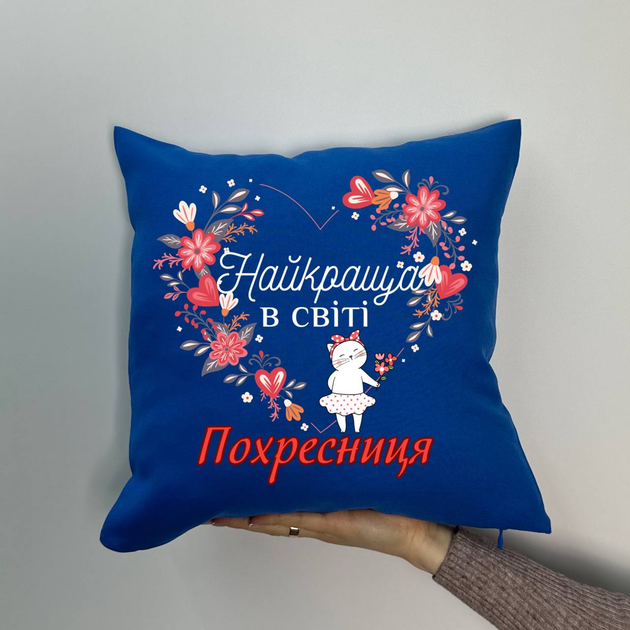 Подушка з принтом габардинова Похресниця, синя 35х35 (828)