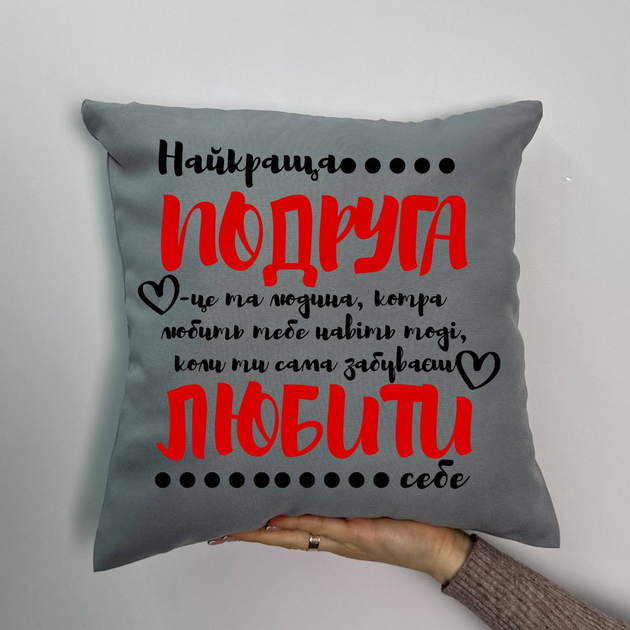 Подушка з принтом габардинова Подруга, сіра 35х35 (1667)