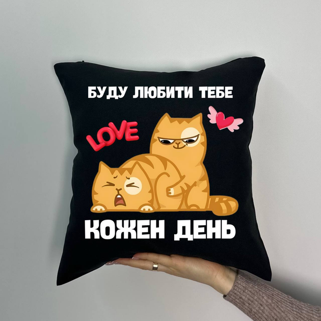 Подушка з принтом габардинова Любитиму тобі щодня, чорна 35х35 (1003)