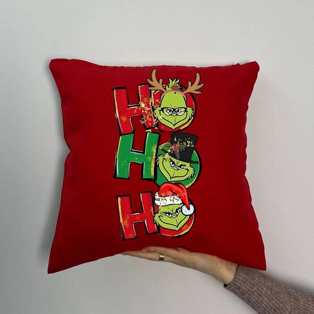 Подушка з принтом габардинова ХоХоХо Грінч, червона 35х35 (1413)
