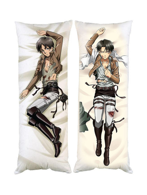 Подушка дакімакура Леві Ерен Атака Титанов декоративна ростова подушка для обіймання двостороння 30*60