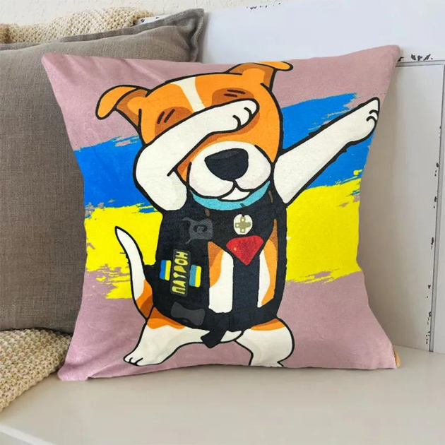 Подушка патріотична 3D Пес Патрон Вірний оберіг України 2 2709E Різнобарвна 50х50 см