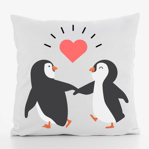 Подушка декоративна з принтом Пінгвіни з серцем габардин 30х30 см Біла