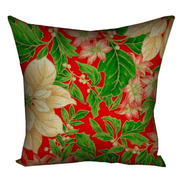 Подушка з принтом габардинова Рождественник с зелеными лисями на красном фоне 50x50 см