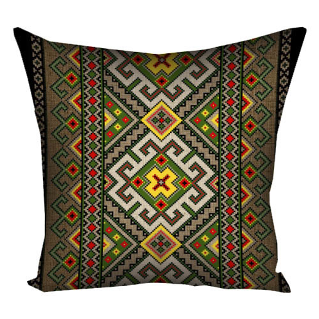 Подушка з принтом габардинова Український орнамент темно-зелений 50x50 см