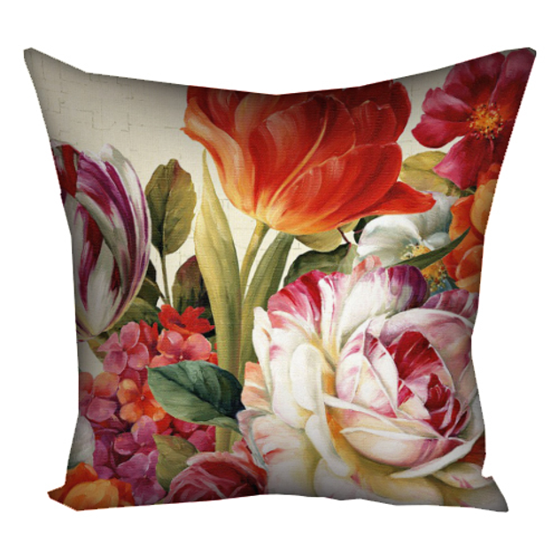 Подушка з принтом габардинова Цветочное настроение на белом фоне 50x50 см