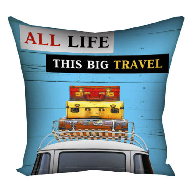Подушка з принтом габардинова All life this big travel 50x50 см