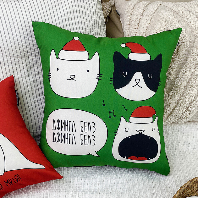 Подушка з принтом габардинова Джингл Белз 50x50 см