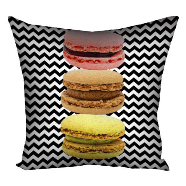 Подушка з принтом габардинова Макаруны на фоне зиг-заг 50x50 см
