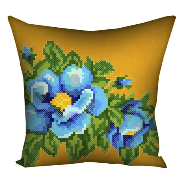 Подушка з принтом габардинова Голубі квіти на жовтому фоні 50x50 см