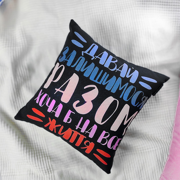 Подушка з принтом габардинова Давай залишимося разом хоча б на все життя! 50x50 см