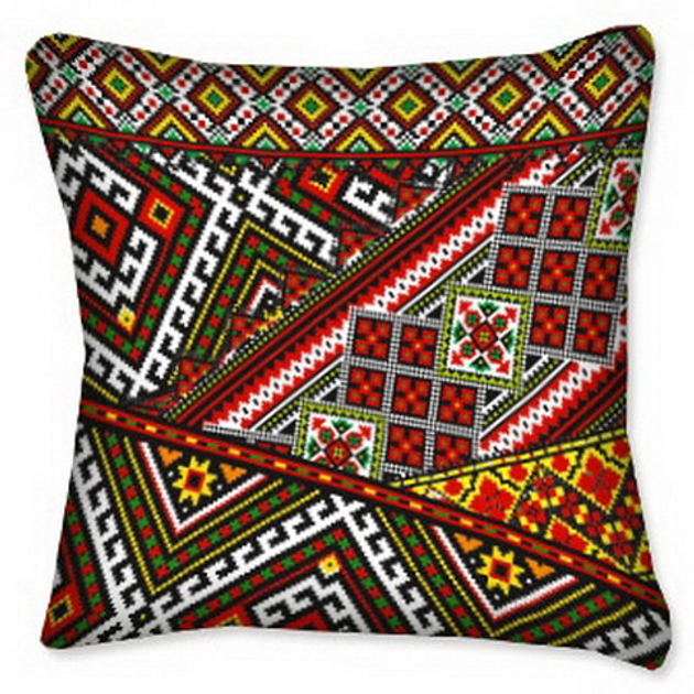 Подушка з принтом габардинова Український разноцветный орнамент 50x50 см