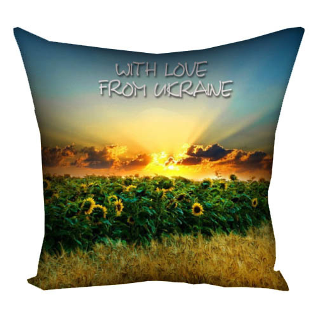 Подушка з принтом габардинова With love from Ukraine на фоне поля с подсолнухами 50x50 см