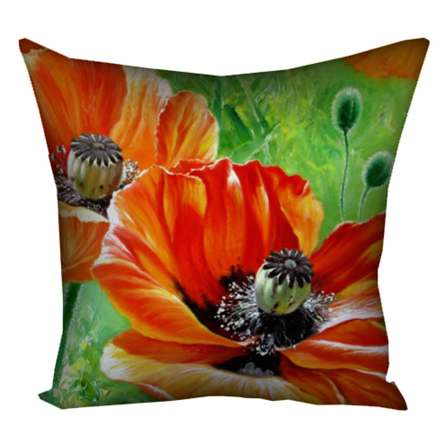 Подушка з принтом габардинова Макові квіти 50x50 см