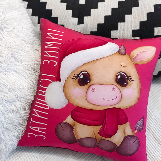 Подушка з принтом габардинова Затишної зими! 50x50 см